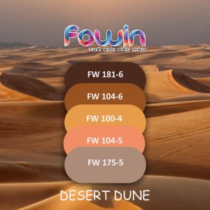Lấy cảm hứng từ những đụn cát mênh mông dưới nắng vàng, bảng màu Desert Dune mang những sắc thái ấm áp của cát vàng, nâu đất và cam đồng.